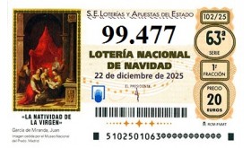 20,00 € COMPRARLotería Nacional para el Sorteo Extraordinario de Navidad Número 99.477, que se celebrará el próximo 22 de Diciembre de 2025.